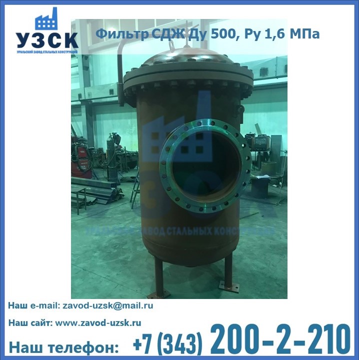 По заказу застройщика ООО «Асстек-Н» УЗСК произвел фильтр СДЖ диаметром 500мм на давление 1,6 Мпа для маслянной среды. УЗСК является производителем фильтров СДЖ. Мы изготавливаем фильтры СДЖ различных типоразмеров от Ду 50 мм до Ду 1000мм из углеродистой или нержавеющей стали. Чаще всего заказывают фильтры СДЖ Ду 150, Ду 200, Ду 300, Ду 400, Ду 500. Цены на фильтр СДЖ сформированы с учетом наилучшего соотношения параметра –стоимость-качество.