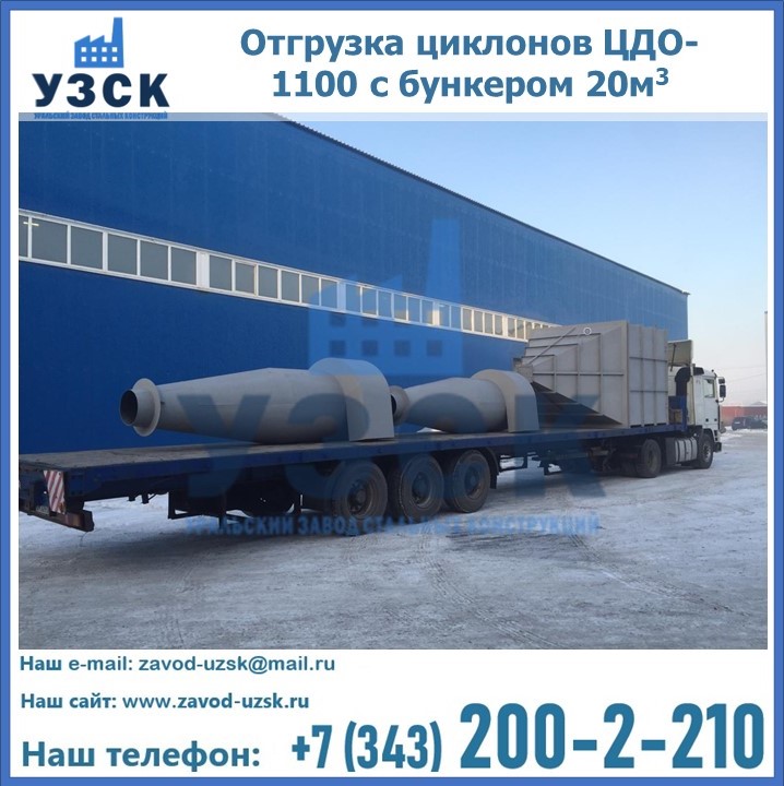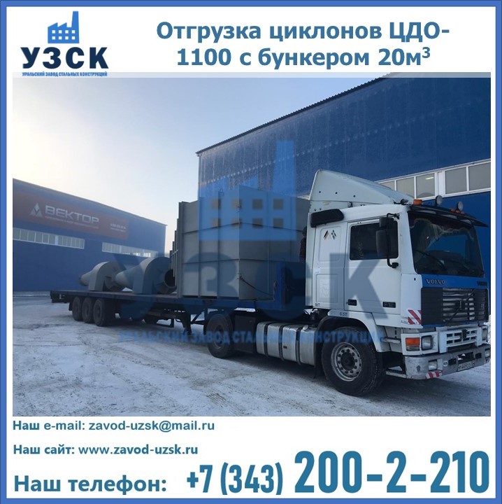 Циклоны ЦДО-1100 с бункером на 20 кубов были отгружены в декабре 2018 года в г. Новосибирск Красногорск.