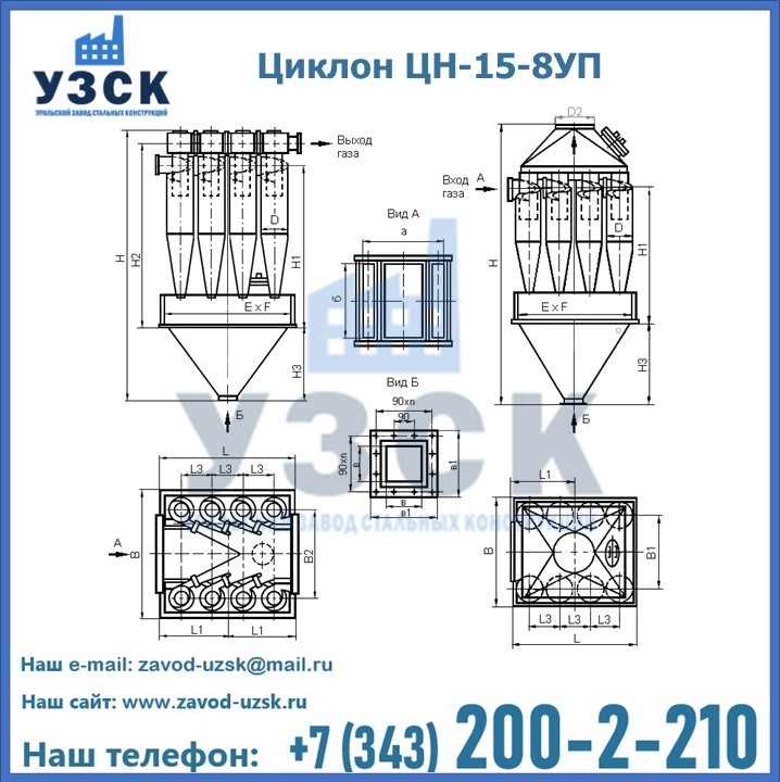 Завод «УЗСК» в Красногорске предлагает большой выбор циклонов ЦН-15-500×8УП и прочих устройств, полностью укомплектованных и готовых к эксплуатации. Мы гарантируем соответствие оборудования всем требованиям ГОСТ и ТУ, износостойкость и высокую производительность предлагаемого оборудования. Уральский Завод Стальных Конструкций изготавливает и продает надежное, эффективное и производительное оборудование, имеющее длительную гарантию и большой эксплуатационный ресурс. Если требуется изготовить циклон нестандартных размеров, то такой вариант выполнения заказа тоже предусмотрен, так как предприятие имеет собственные производственные площади и надежных поставщиков. На все поставляемое или производимое оборудование имеются чертежи и прочая техническая документация. Заказать и купить циклоны или прочее оборудование высокого качества и по доступной цене можно через наш сайт или по указанному в разделе «Контакты» телефону.