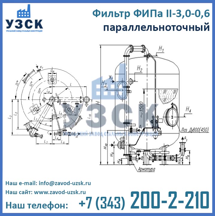 Актуальные цены на ФИПаII-3,0-0,6 в Красногорске Вы можете уточнить в отделе продаж Уральского Завода Стальных Конструкций (производитель ионитных фильтров), для этого заполните форму заказа внизу страницы.