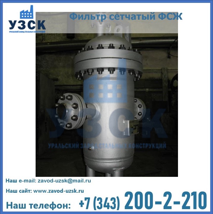 Очистку перекачиваемых жидкостей на предприятиях нефтяной, пищевой, горнорудной, фармацевтической и других отраслей промышленности эффективно выполнять с помощью жидкостного сетчатого фильтра — емкостное оборудование цилиндрической формы со съемной крышкой и элементом фильтрации внутри. Оснащенные им всасывающие линии насосных станций и установок защищены от проникновения твердых частиц в функциональные узлы гидравлической системы. Оборудование служит для перекачивания токсичных, агрессивных и иных эмульсий, суспензий, жидкостей. Купить фильтр сетчатый жидкостный ФСЖ в Красногорске с гарантией производителя предлагает «Уральский завод стальных конструкций». Мы выполняем проектирование и изготовление ФСЖ по индивидуальным требованиям (климатическая зона, транспортируемая жидкость).