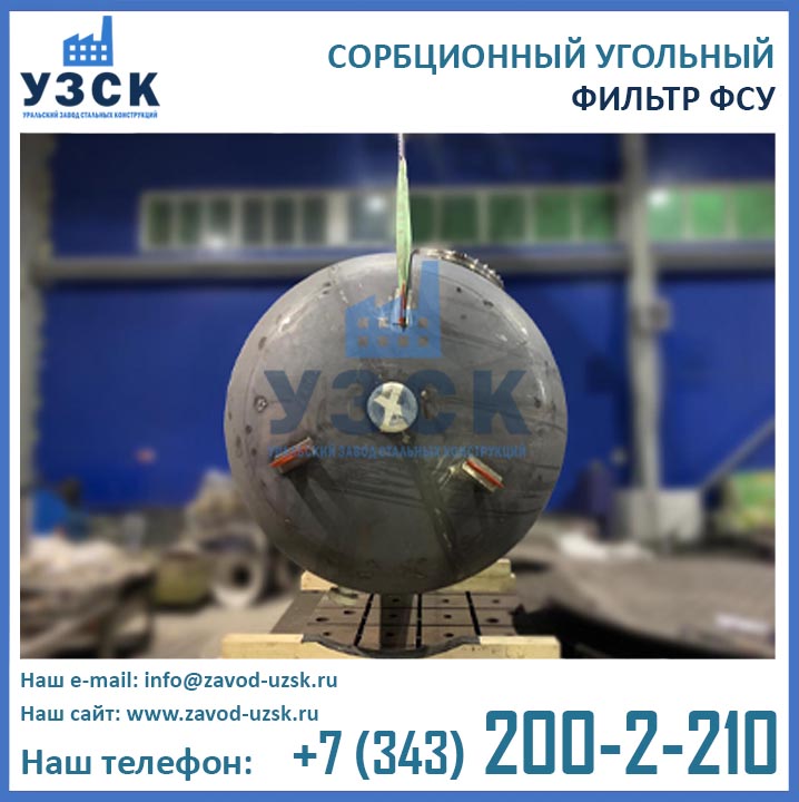 Качественную работу отопительных и промышленных котельных, линий по очистке конденсата и природных вод, электростанций обеспечивает фильтр сорбционный угольный типа ФСУ — вертикальный сосуд с одной камерой цилиндрической формы. Основное назначение оборудования состоит в глубокой очистке возвращаемого с производства конденсата от запахов, органических загрязнений и привкусов. Использование ФСУ в системах водоподготовки гарантирует очищение субстанции от масел, органических примесей, остатков нефтепродуктов до нормального значения — 0.52-1.0 мг/л. Купить в Красногорске угольные фильтры предлагает наш Уральский завод стальных конструкций. Мы выполняем производство ФСУ под нужды предприятия, возможно изготовление сорбционных фильтров ФСУ из нержавеющей стали включая корпус и внутренние устройства.