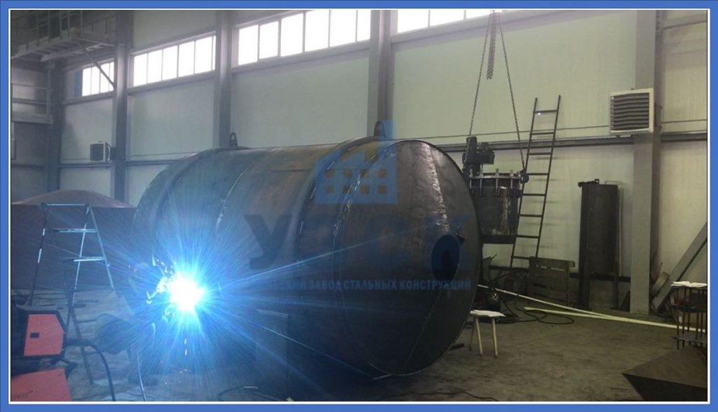 Компания «УЗСК» в Красногорске специализируется на изготовлении емкостного оборудования. Баки-аккумуляторы объемом до 100 м3 на заводе изготавливаются «под ключ». Производственная линия оснащена вальцовочными станками, стендами автоматической и полуавтоматической двухсторонней сварки обечаек и листов. Днища любой формы центруются на специальных приспособлениях, для точной вварки в цилиндр.