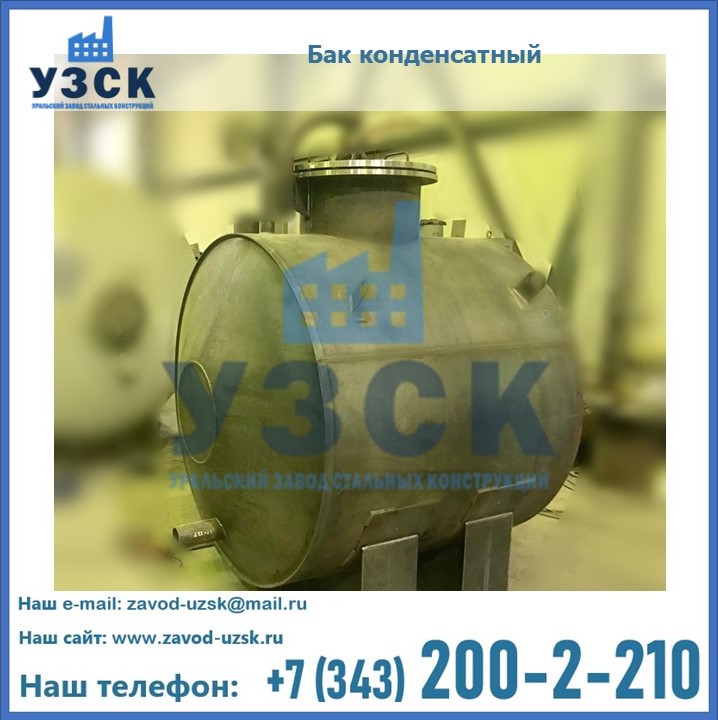 Многие заказчики стараются конденсатные баки купить по выгодной цене в компании «УЗСК» в Красногорске. Причин несколько. Производитель поставляет емкости с полным комплектом лестниц, площадок обслуживания. Бак после гидравлических испытаний покрывают специальной внутренней и наружной краской, накладывают теплоизоляцию или наваривают крепеж для навески минматов. Условия теплоизоляции согласуются с заказчиком.