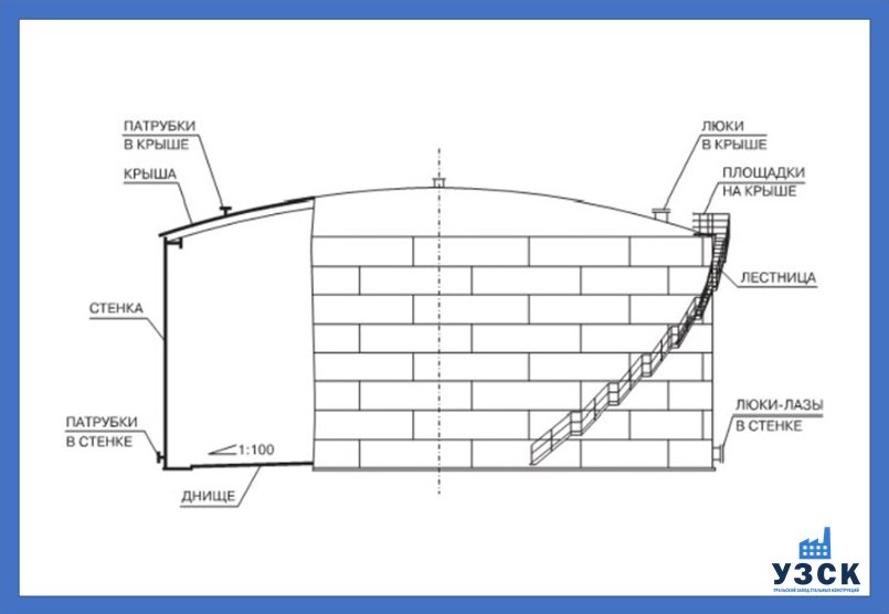 Основные элементы конструкции вертикального цилиндрического резервуара РВС