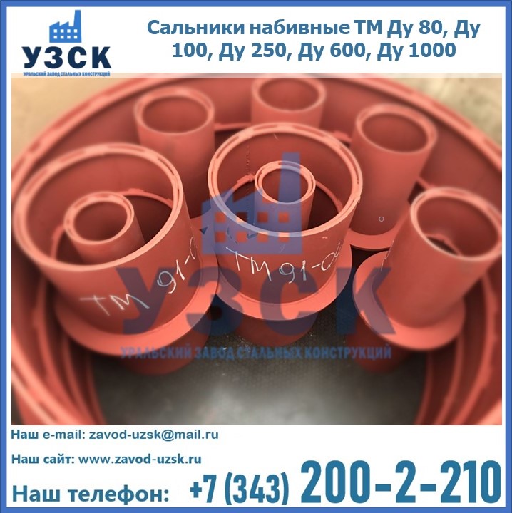 На производственных площадях Уральского Завода Стальных Конструкций в Красногорске профессиональные сотрудники занимаются проектированием и разработкой различных закладных деталей, в частности осуществляется производство и реализация набивных и нажимных сальников. Все изделия, которые можно приобрести у нас, отвечают установленным требованиям по ГОСТу, а также прочей нормативной документации.